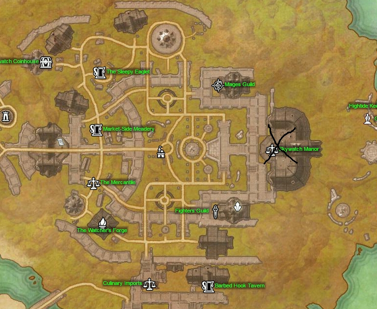 Dieses Haus hat einen kleinen Garten mit Mauer drumherum. Handwerksstationen können aufgebaut werden, eventuell gibt es aber Positionsprobleme wegen der elfischen Architektur. |